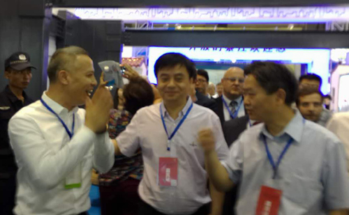 bd游戏的官方 总裁助理施国强(左一)热情交流